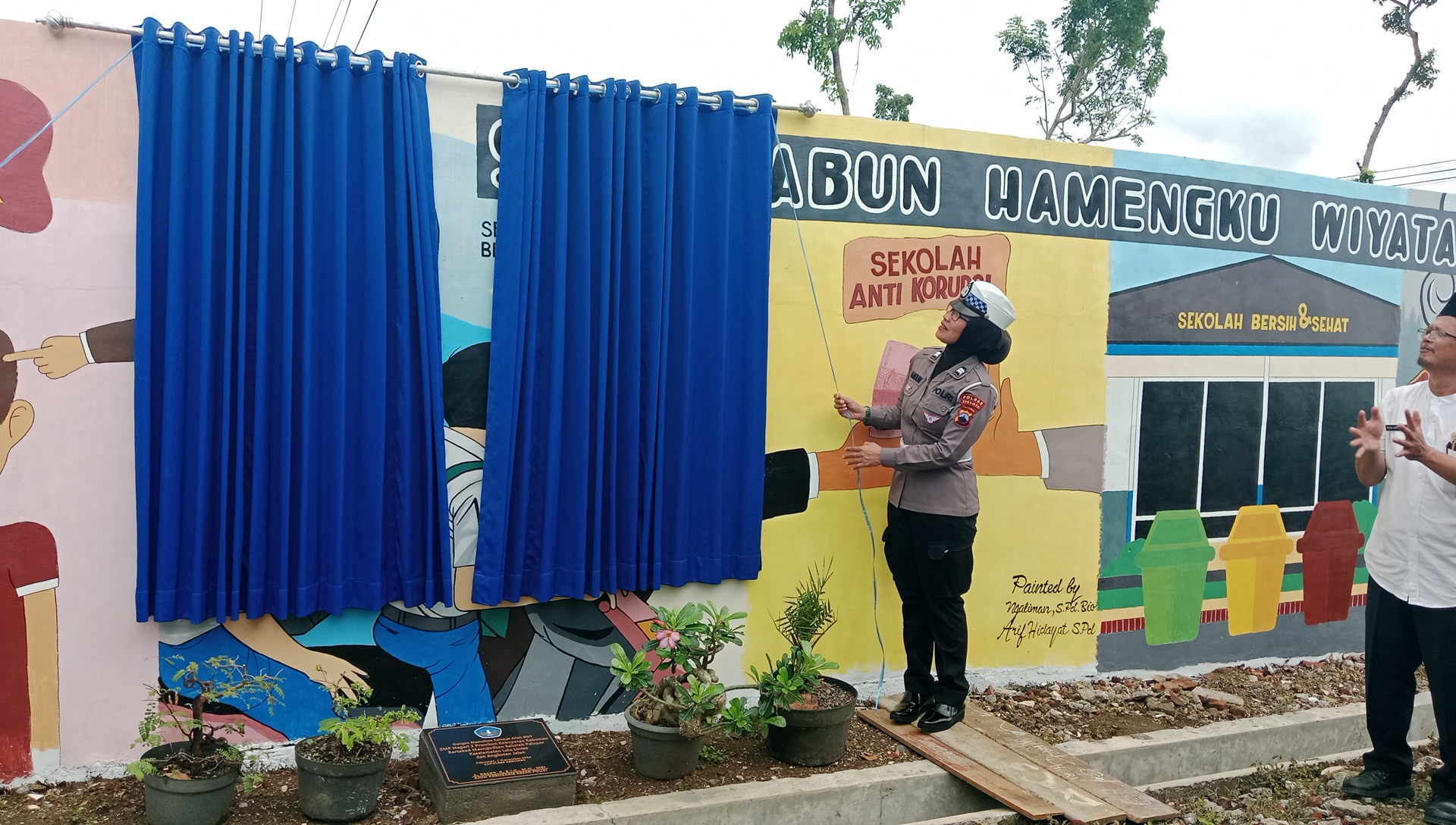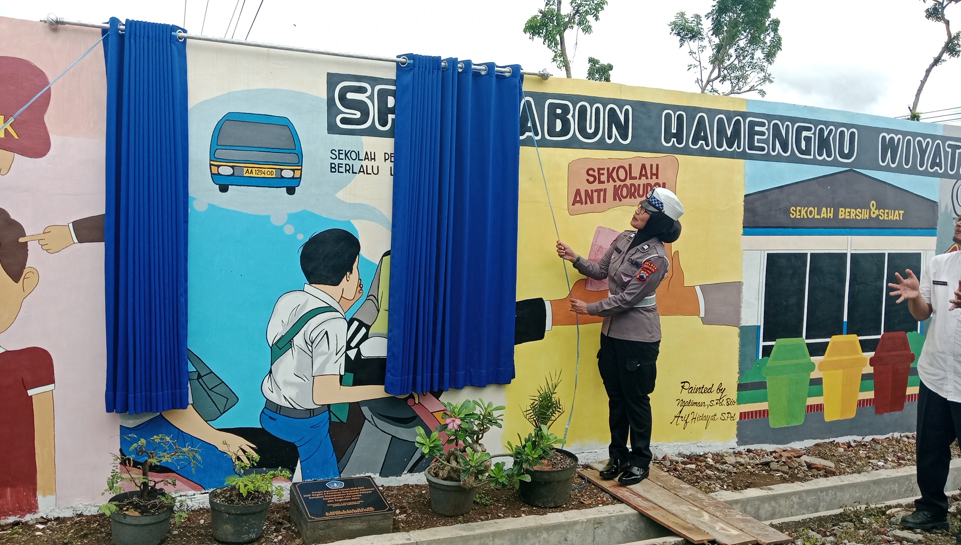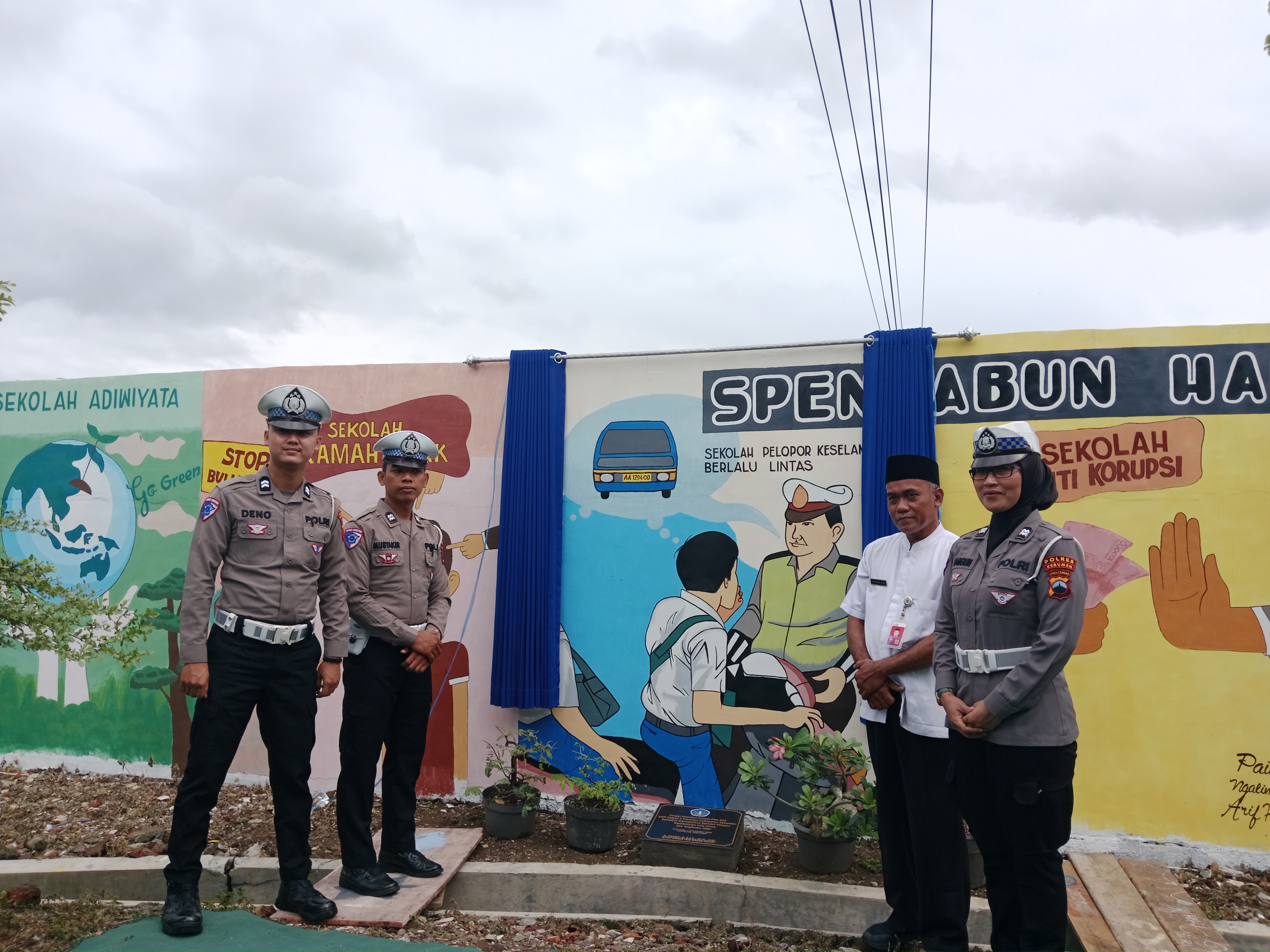 Dilanjutkan dengan pemotongan pita oleh pihak Kastlantas yaitu ibu Bangun dengan didampingi oleh bapak kepala sekolah, dilanjutkan meletakan prasasti. dilanjutkan membuka tirai gambar "Sekolah pelopor tertib berlalu lintas " dan tak lupa pendatangan "MOU" kepada para supir angkot, agar siswa-siswi yang menggunakaan anggot tidak ada lagi yang duduk di atas anggkot atau berdiri di pintu anggot. sekaligus penanaman pohon oleh Kapolres Kebumen dan bapak Kepala sekolah sebagai awal pembukaan kegiatan "Adiwiyata".