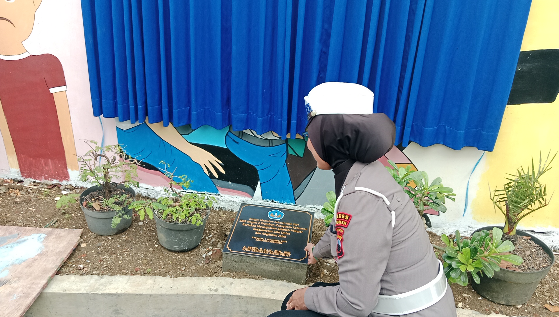 Dilanjutkan dengan pemotongan pita oleh pihak Kastlantas yaitu ibu Bangun dengan didampingi oleh bapak kepala sekolah, dilanjutkan meletakan prasasti. dilanjutkan membuka tirai gambar "Sekolah pelopor tertib berlalu lintas " dan tak lupa pendatangan "MOU" kepada para supir angkot, agar siswa-siswi yang menggunakaan anggot tidak ada lagi yang duduk di atas anggkot atau berdiri di pintu anggot. sekaligus penanaman pohon oleh Kapolres Kebumen dan bapak Kepala sekolah sebagai awal pembukaan kegiatan "Adiwiyata".